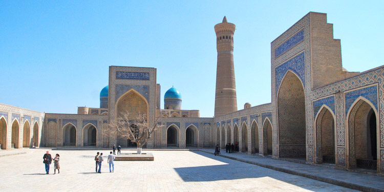 Пойкалон (XII–XVI вв.) архитектурный ансамбль «Масджиди Калон», «Мири Араб», медресе и минарет (46 м).