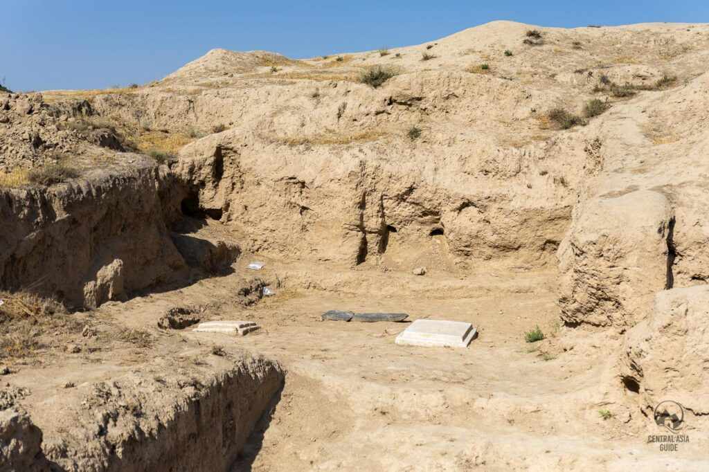 Early morning transfer to the Uzbekistan-Tajikistan border crossing at Jartepa (50 km, 1 h). Customs and passport control on both sides, cross the border, meet Tajik local guide and driver and drive to Pendjikent via the settlement of Sarazm, included in the UNESCO World Heritage List (20 km). Start sightseeing tour in Pendjikent: Rudaki Museum, local Bazaar and mosque. Lunch at local restaurant. After lunch drive to the ruins of ancient Pendjikent located within 5 minutes drive from modern Pendjikent. Pendjikent a major Sogdian city is dating back to 5th century and was destroyed with Arab conquerors in 8th century.