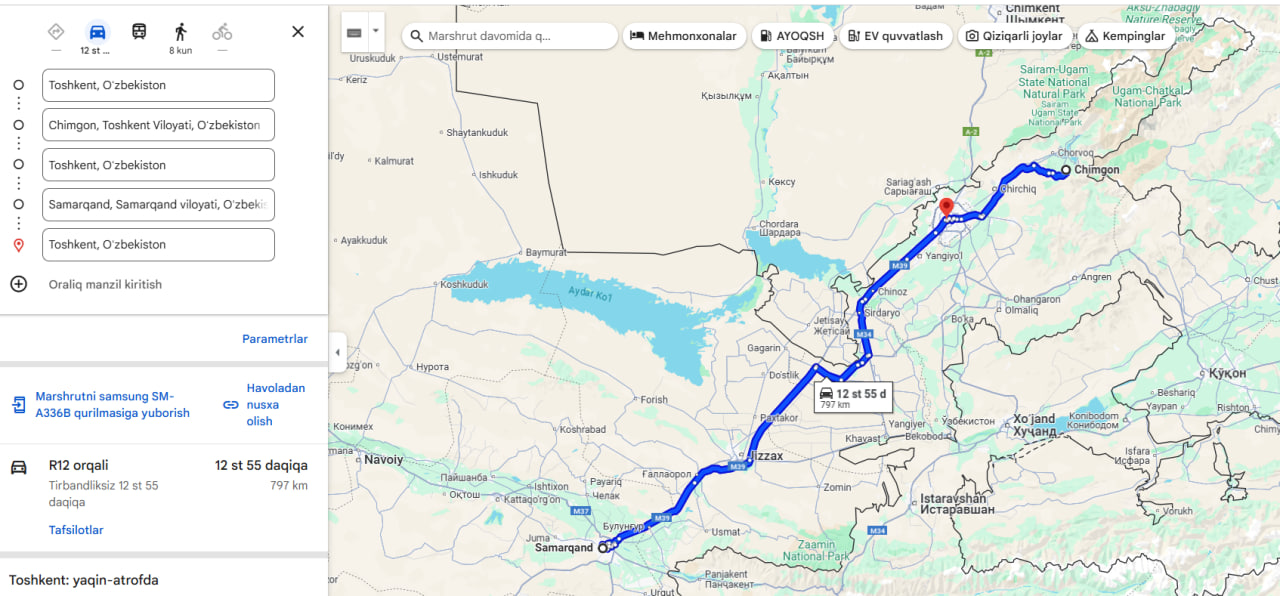 After lunch, transfer back to Tashkent. The total journey is 200 km one-way long.