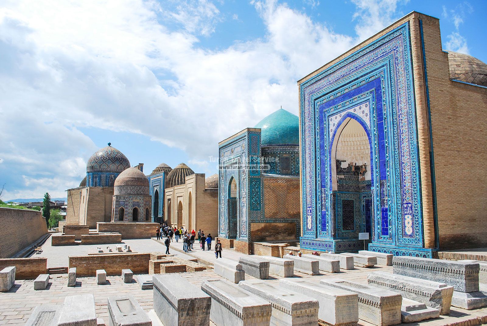 – Shahi Zinda Necropolis – unique complex of Mausoleums formed by standing on both sides of the cenotaph (an imaginary grave) belonging to the Muslim person named Saint Abbas ibn-Kussam;